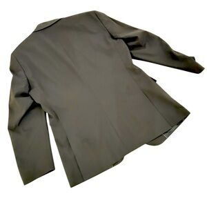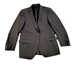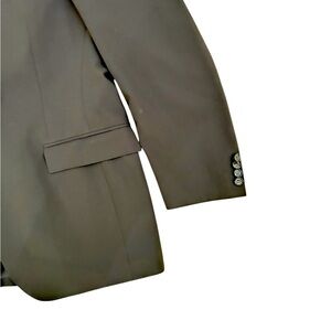 Made in Portugal. This men’s Strellson 2 piece suit slim fit dark charcoal grey. Jacket is 2 button flap pocket slim fit jacket is lined. Made of the finest stretch wool. 4 buttons on cuffs. Double back slits. 40R pants are flat front and are 34 x 32. Euc