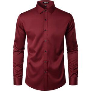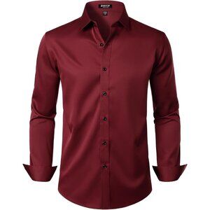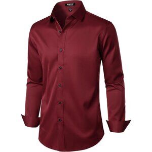 Men's Stretch Wrinkle Free Formal Long Sleeve Slim Fit Button Down Dress Shirts