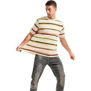Mens Stripe T Shirt Crewneck Loose Fit Soft Cotton Stretch Casual Streetwear