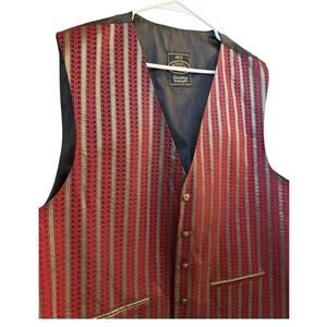 Elevate your style with this striking red vest, featuring a classic striped design. Perfect for adding a touch of sophistication to any outfit.