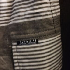 Dive into style with these men's striped swim shorts. Featuring a sleek gray and white design, these shorts are perfect for any beach or pool day.nwt