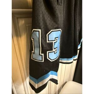 Men's Striped Trim #13 Mesh Perforated Sports Basketball Shorts Black Blue Small