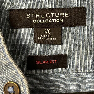 Enhance your wardrobe with this stylish Men’s Structure Button Down Shirt in size Small. Made from 100% cotton, it offers both comfort and durability. In good condition, it's perfect for any casual occasion! See included pictures for measurements.