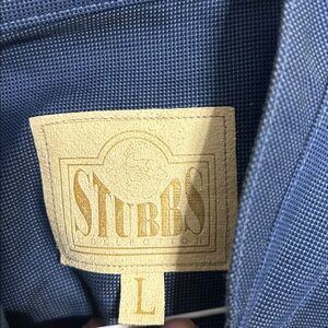 Mens pre loved Navy Stubbs Shirt in size Large. Has the button strip for the shirt but not the sleeve cuff buttons. 100% Cotton