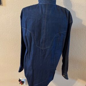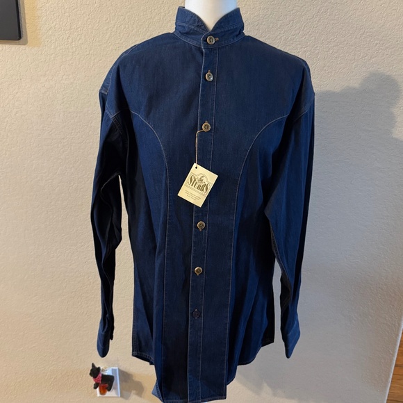 Men's Stubbs Western Wear Silky Denim Banded Collar Long Sleeve Shirt SZ L