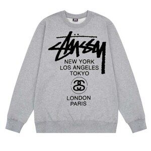 Stussy National City Letters Print Crew Neck Grey Sweatshirt