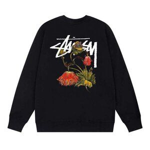 Stussy Floral Print Crew Neck Long Sleeve Sweatshirt Black