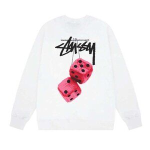 Stussy Pink Dice Print Crew Neck White Sweatshirt