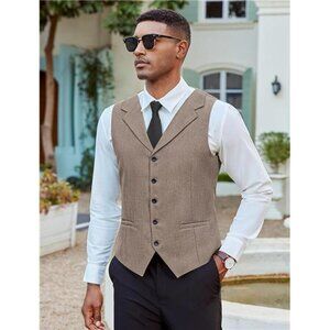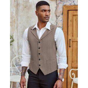 Men's Suit Vests Slim Fit Waistcoat Formal Vest Brown