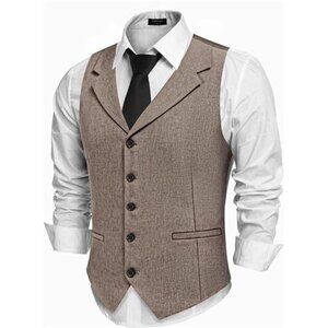 Men's Suit Vests Slim Fit Waistcoat Formal Vest Light Brown