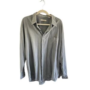 Men's Summa Shirt Gray Silk Cotton Blend Long Sleeve Button Up Top