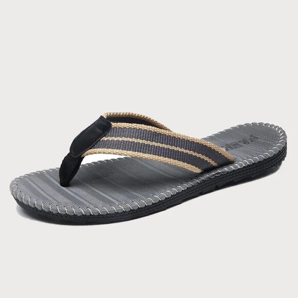 Men's Summer Stitched Anti-Slip Rubber Sole Flat Beach Flip-Flop GREY 8.5/42