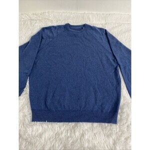 Men's Sweater 100% Pure Cashmere Size L Blue Crew Neck Luxury Long Sleeves