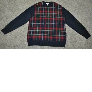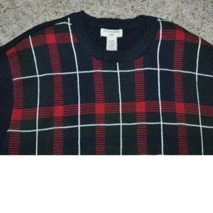 Mens Sweater Dockers Blue Red Plaid X-Large Crewneck Long Sleeves Cotton Classic