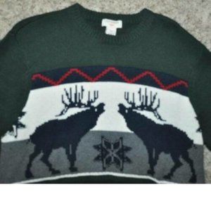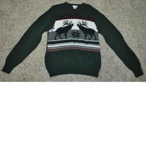 Mens Sweater Dockers Green Moose Small Crewneck Long Sleeve Winter Holiday