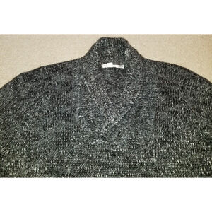 Mens Sweater-CALVIN KLEIN-black/grey marled wool/alpaca V-neck shawl collar-XL