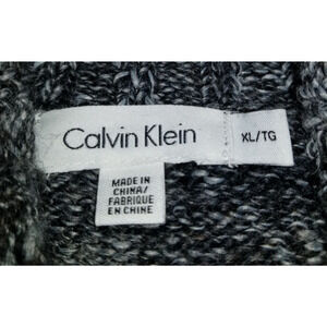 Men's Sweater-CALVIN KLEIN-Amazing men's black and grey marled wool/alpaca blend pullover sweater. Sweater has a V-neckline, no closures, no pockets, long sleeves, and is not lined. 55% Acrylic, 25% Wool, 15% Polyester, 5% Alpaca. Marked Size: XL (Underarm-to-Underarm= 23 inches, Length= 29 inches). Excellent condition. Non-smoking home. Thanks for looking.
