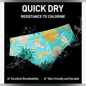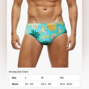Men’s Swim Brief Swimsuit Trunks Banana Pineapple Size Large Removable Pad NWOT