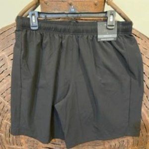 New Men's swim trunks. Size Large. Charcoal color. Front pockets with zippers. Comfort fit.