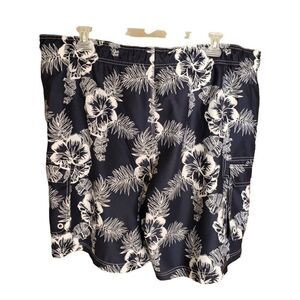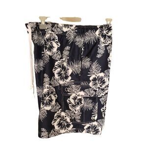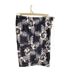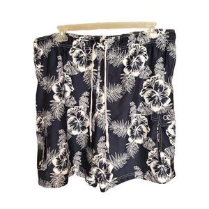 Men's Swimwear 2XL Swim Trunks Navy Blue Hibiscus Volley Pockets 2XL NWOT