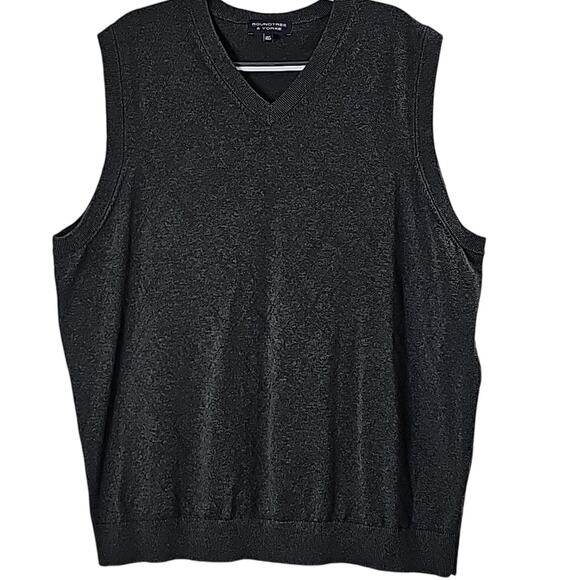 Mens Sz 2XL Gray V-Neck Sleeveless 100% Cotton Vest Preppy Roundtree & Yorke