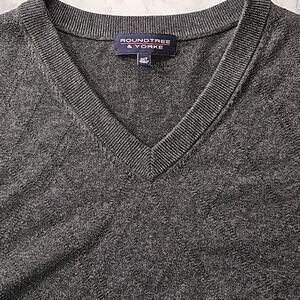 Mens Sz 2XL Gray V-Neck Sleeveless 100% Cotton Vest Roundtree & Yorke. Diamond Design Sleeveless Golf Grandpa Preppy Streetwear