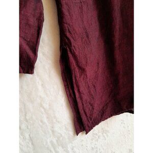 Excellent Pre-Owned Condition (see pics for details)-the only flaw is that the material content label is missing but this fabric feels like linen. Also, the size tag says 40 which translates to a US size medium, but the pit to pit size of 45 inches suggests a slightly bigger, relaxed fit