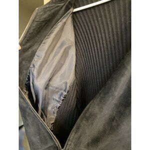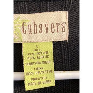 Mens Sz L Black Cubavera Zip Suede Front Ribbed Knit Sweater Jacket Retro EUC