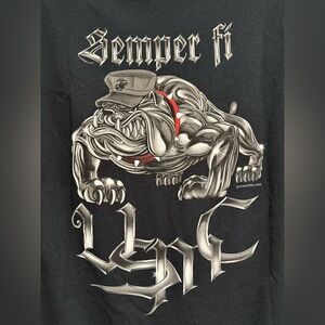 Men’s Sz: Large Semper Fi USMC Chrome Bulldog Graphic Black Short Sleeve Tee. Excellent used condition. Little to no wear. No rips, stains or defects. Please see pictures for measurements.