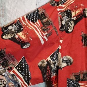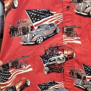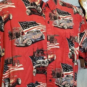 Men's Sz XXL RedHead Red Hot Rods Flames & Flags Button Up Short Sleeve Shirt