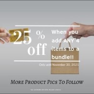 Add this and other items to a bundle and SAVE BIG on your product and only pay 1 shipping fee. Bundles including four or more items receive a 25% off discount. Bundles must weigh less than 5 lbs. Bundles over 5 must be split. I am updating my listings to include the shipping weights.
