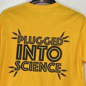 Mens T-Shirt Size Large Yellow Plugged Into Science Gildan Short Sleeves Shipping ( in 1 business day.)