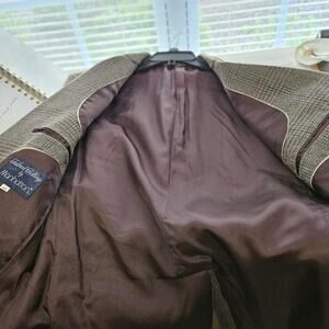 Mens Tailored Clothing by Manhattan Brown Plaid Wool Sport Coat Jacket Size 44L