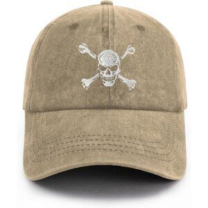 Men's Tan Skull Crossbones Embroidered Skeleton Cotton Comfort Baseball Cap
