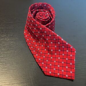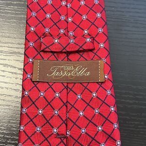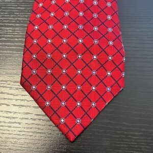 Men's Tasso Elba Red and Blue Diamond Patterned Silk Tie / Necktie