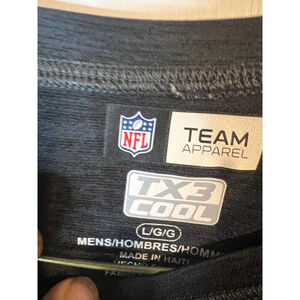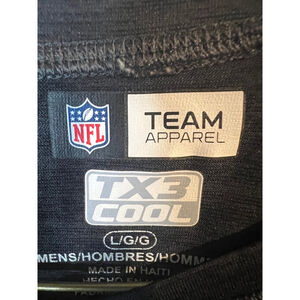 "item_description": "This is a pre-owned, gray, short-sleeved T-shirt, size Large, featuring the New Orleans Saints logo and team name in gold on the front. The shirt is made by Team Apparel TX3 Cool. It has a crew neck and raglan sleeves. The material appears to be a synthetic blend. There are no visible stains or tears, but the fabric shows signs of wear consistent with pre-owned condition."
