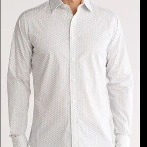 Mens Ted Baker 100% Cotton Contrast Trim White/Gray Button Down SZ 5 EUC