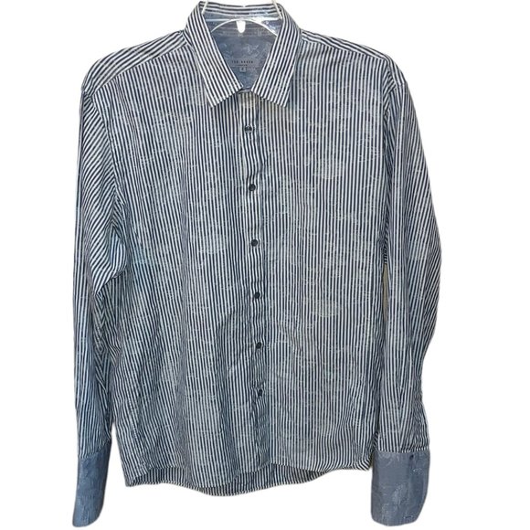 Men's Ted Baker London Grey/White Stripe Button Down Dress Shirt Size 6 (2XL)
