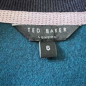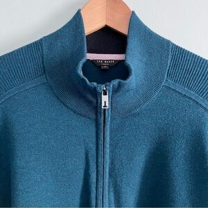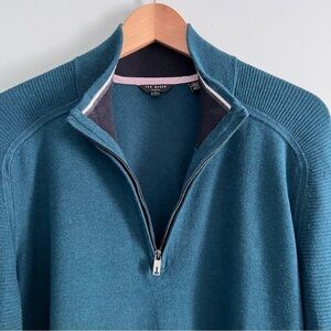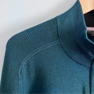 Ted Baker London Pullover Funnel Neck 1/3 Zip Ribbed Shoulders & Long Sleeve Sweater in Teal. Excellent Quality!