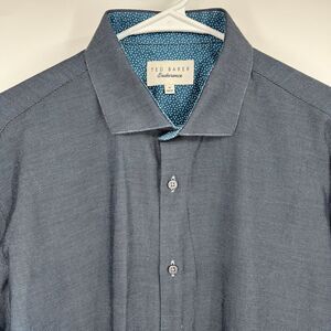 Mens Ted Baker Long Sleeve Blue Button Dress Shirt 17 Business Classic