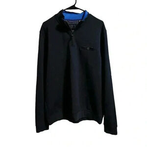 Trendy and classic pullover sweatshirt. Navy Blue. Quarter zip. Long sleeves. Front pocket with button closure.