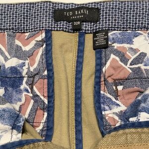 Ted Baker shorts are so comfortable and very light weight for being all cotton. Cool contrast trim (usual Ted), size 32R. These shorts are 9" inseam and are in good pre-owned condition.