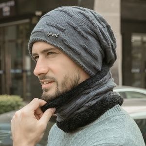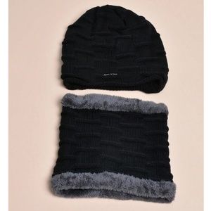 Men's Teddy Lined Cashmere Beanie Infinity Scarf Set