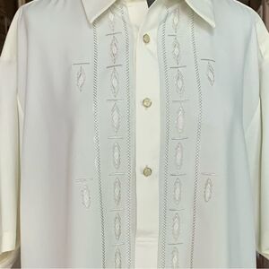 Mens Tee BURDA Short Sleeve Shirt Ivory Front Embroidered Button Front T-shirt