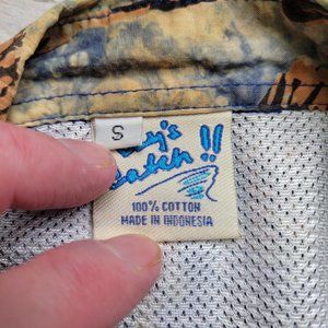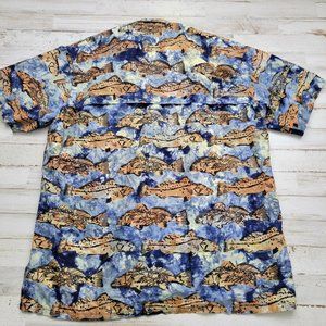 I am a one man operation and have been selling online since 1999. I take great pride in my feedback and long history selling. This men's fishing shirt by The Days Catch is perfect for any fishing enthusiast. With a vibrant multicolor fish pattern all over, this short sleeve button-up shirt is made of comfortable cotton material and features a collared neckline. The shirt is available in size small and has a regular fit. Additional features include a vented design to ensure comfort during those hot summer fishing trips. Perfect for any casual occasion, this fish-themed shirt is a great addition to any wardrobe.