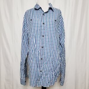 Men's The North Face Plaid Button Down Shirt. Size Medium. Blue and white color. Gently used condition with no rips or stains.