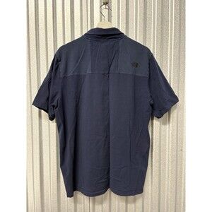 The North Face polo, mens navy blue shirt, size large polo, cotton elastane blend, short sleeve casual wear, outdoor-inspired brand, versatile mens apparel.