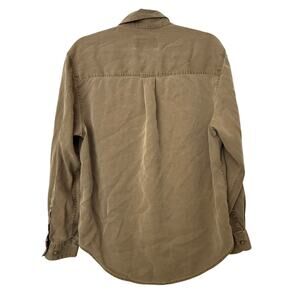 Mens The Territory Ahead Tan Silk Stripe Button Down Long Sleeve Overshirt-Small