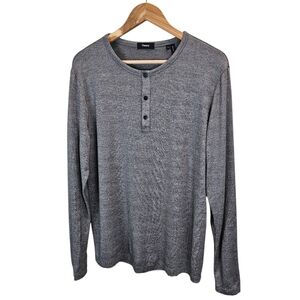 Men's Theory Gray Snap Henley Shirt In Modal Jersey Size Large Comfort Casual