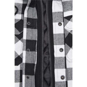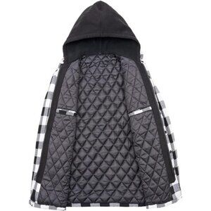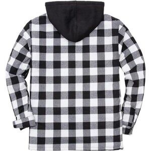 Men's Thicken Plaid Hooded Flannel Shirt Jacket Quilted Lined Full Zip Black and